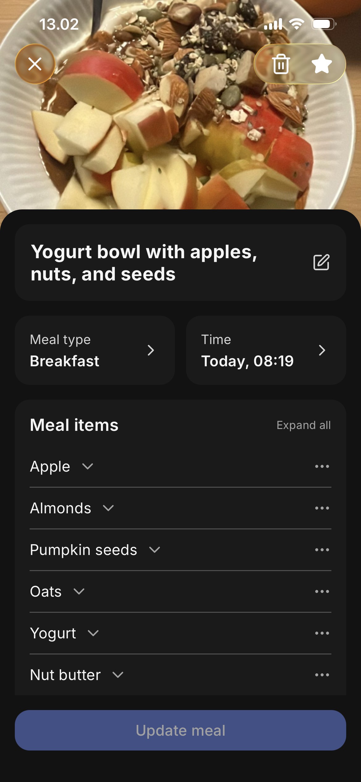 Stop typing endless lists. Snap a photo to log ingredients instantly, then let AI connect the dots. Discover hidden correlations between your meals, meds, mood, and symptoms to see the full picture of your health.