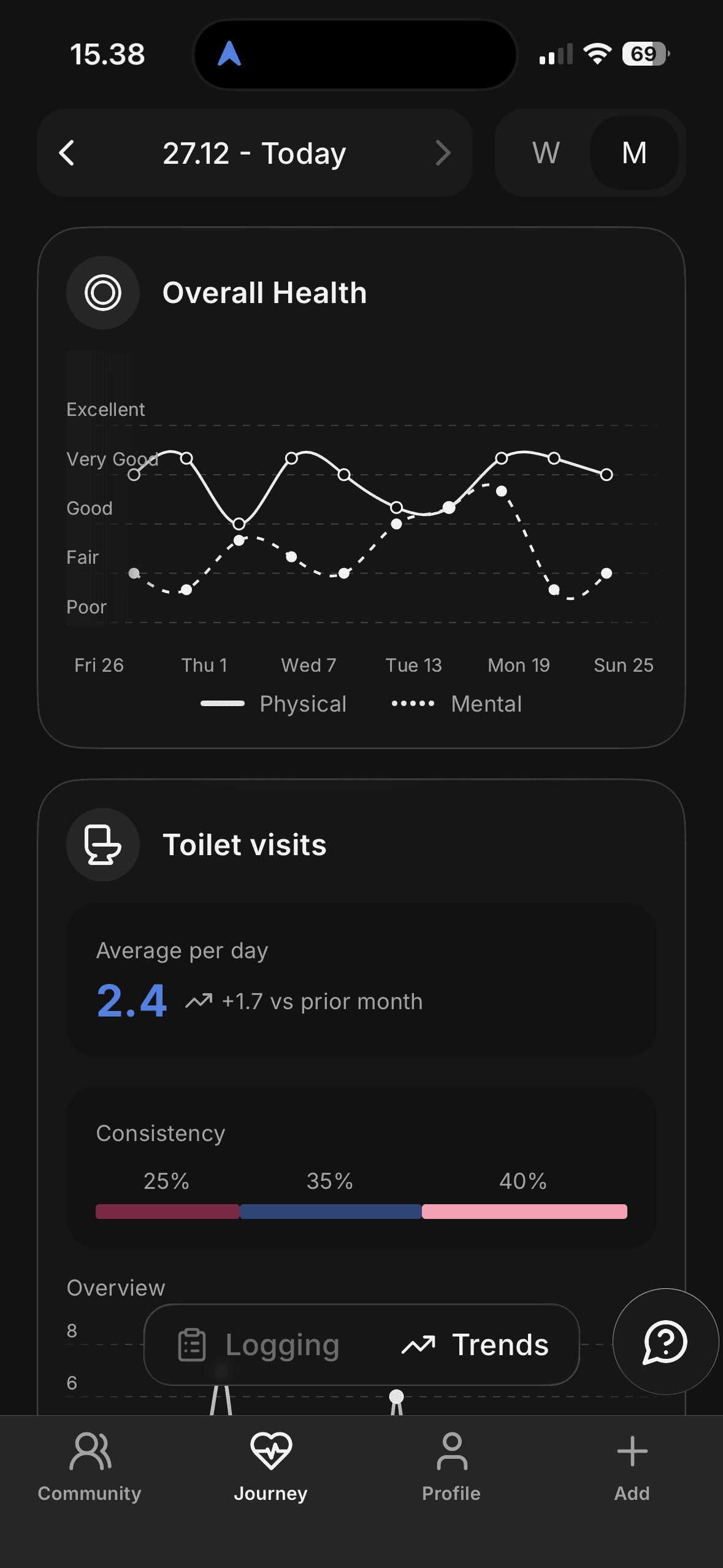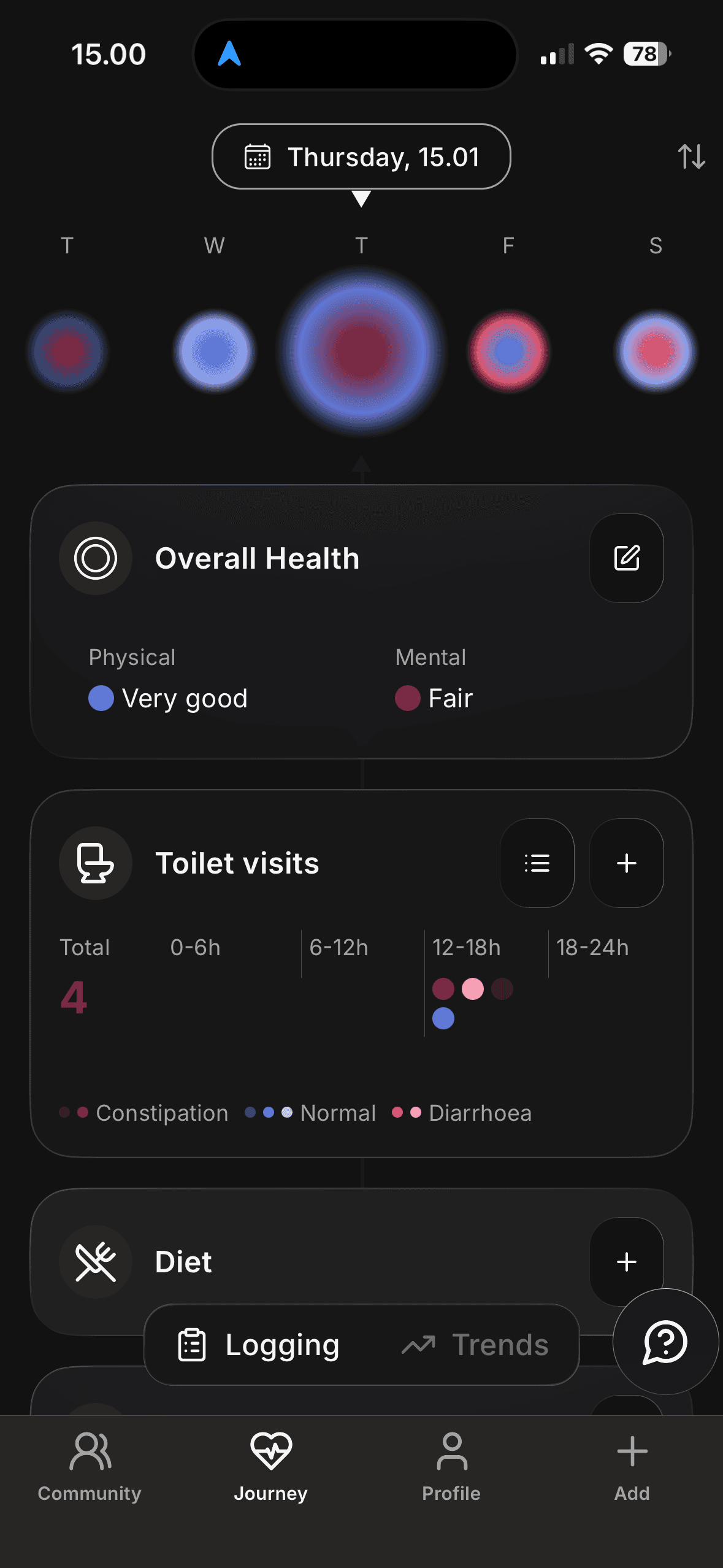Log your meals, meds, bowel movements, and symptoms, and share the ups and downs with people who truly understand. Never navigate IBD alone again.